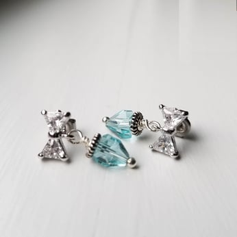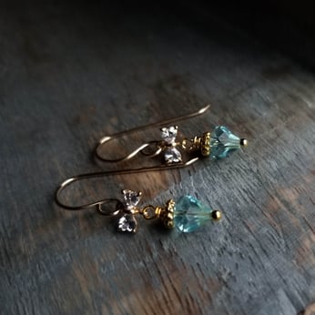 Clear Crystal + Soft Aqua Blue Sea Glass Earrings