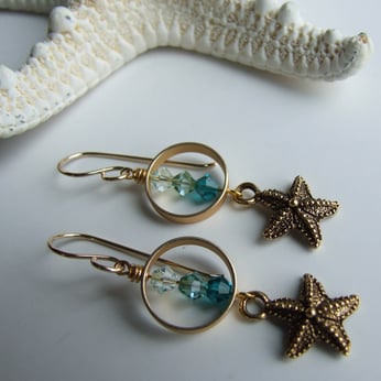 Mediterranean Tile Earrings - Sea Blue + Gold