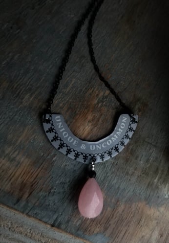 Black Tin Rosey Pink Flower Pottery Shard Earrings