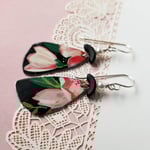 Black Tin Pale Pink Flowers Pottery Shard Earrings