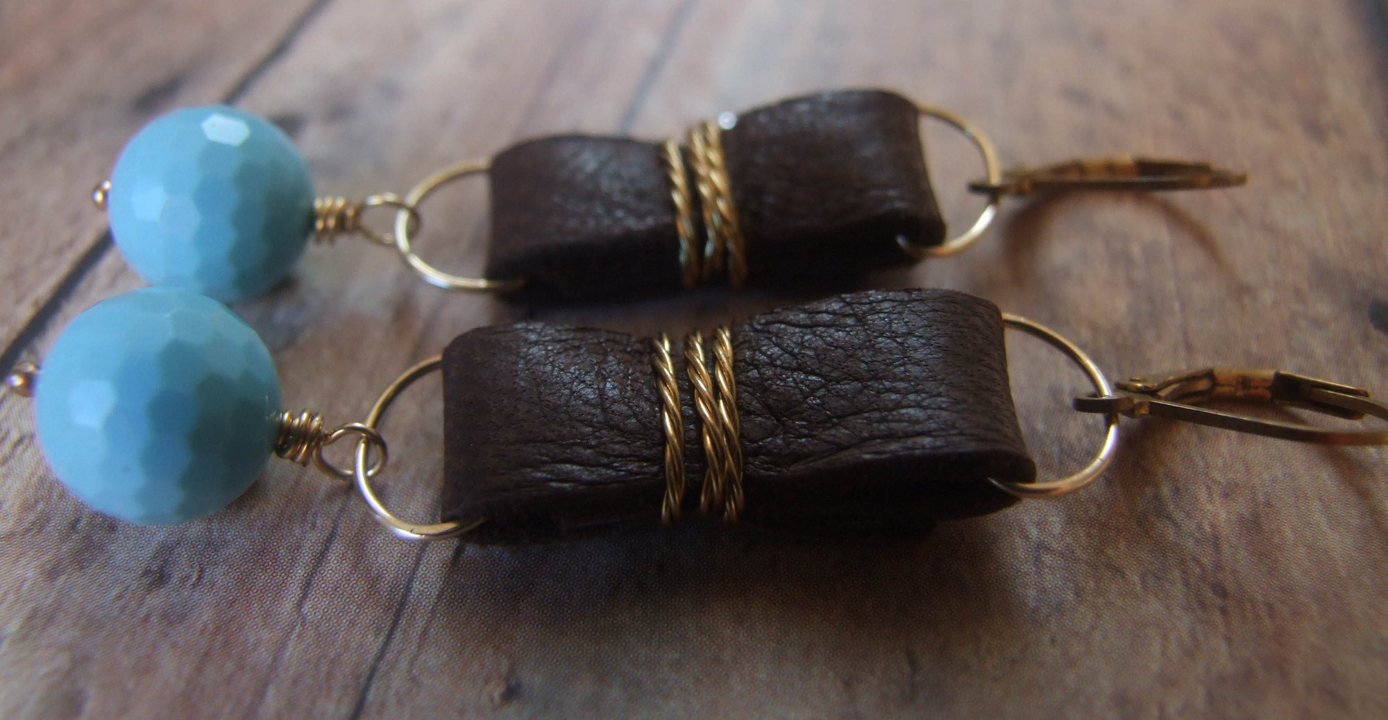 Soft blue faceted turquoise beads dangle gently beneath soft supple deerskin. There’s a great Native American vibe to these earrings. Go bohemian. Brass lever back ear wires (naturally lead and nickel free).