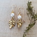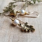 Autumn Treasure - Pearl Acorn and Oak Leaf Earrings (Gold)
