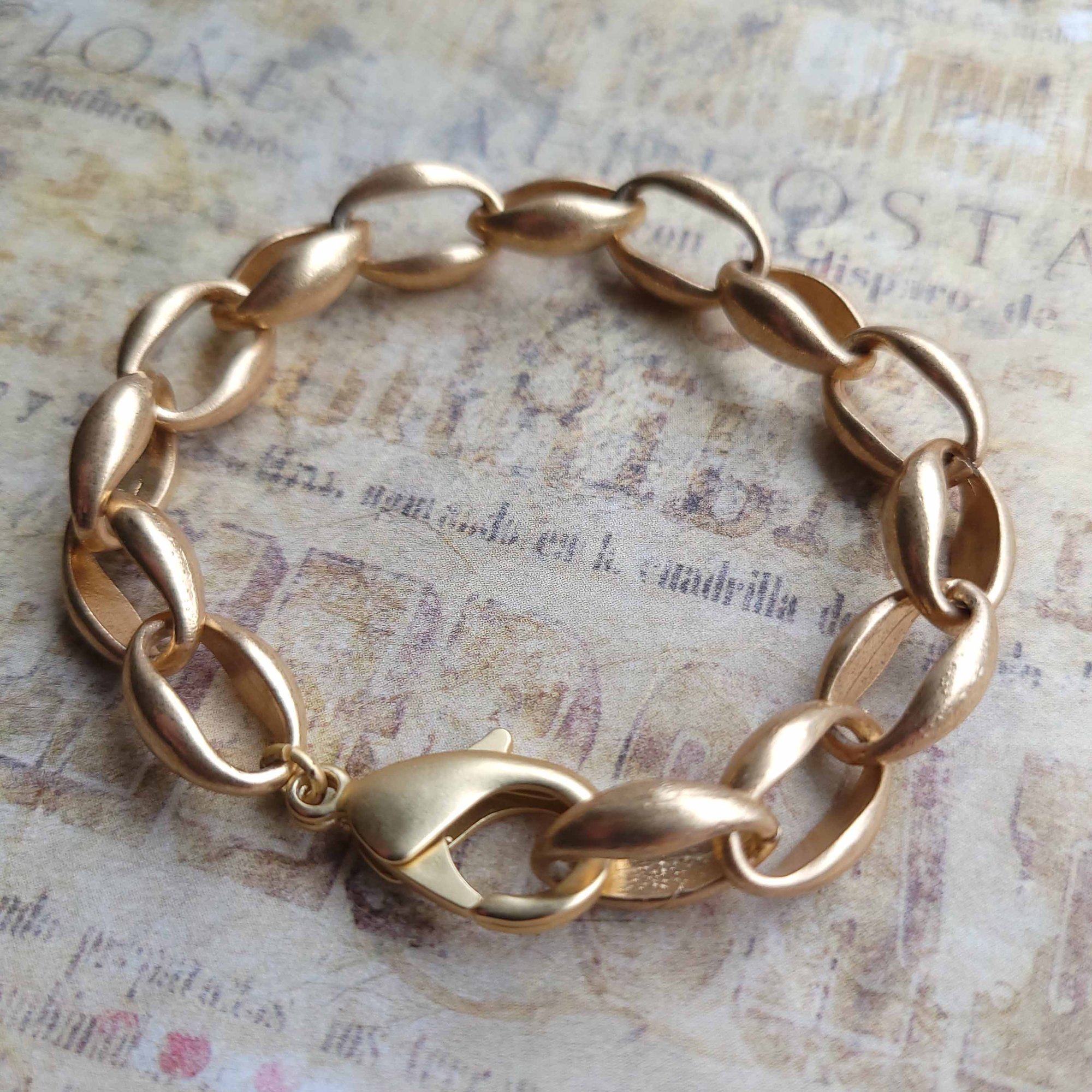 A beautiful chunky, soft-colored gold chain bracelet, in its simplicity, is a lovely classic accessory. The patina on this chain is fabulous, very similar to karat gold.