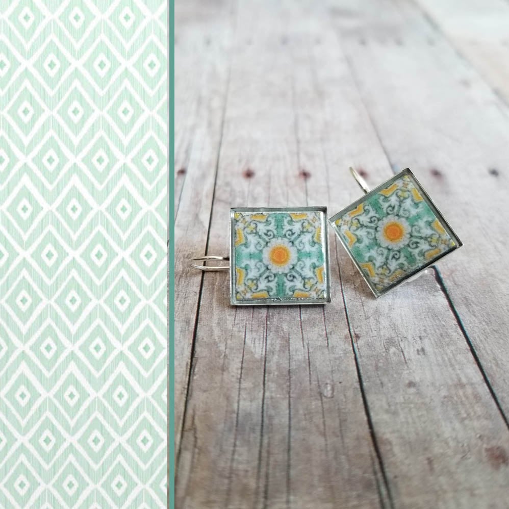 Mediterranean Tile Earrings - Mint + Orange Yellow