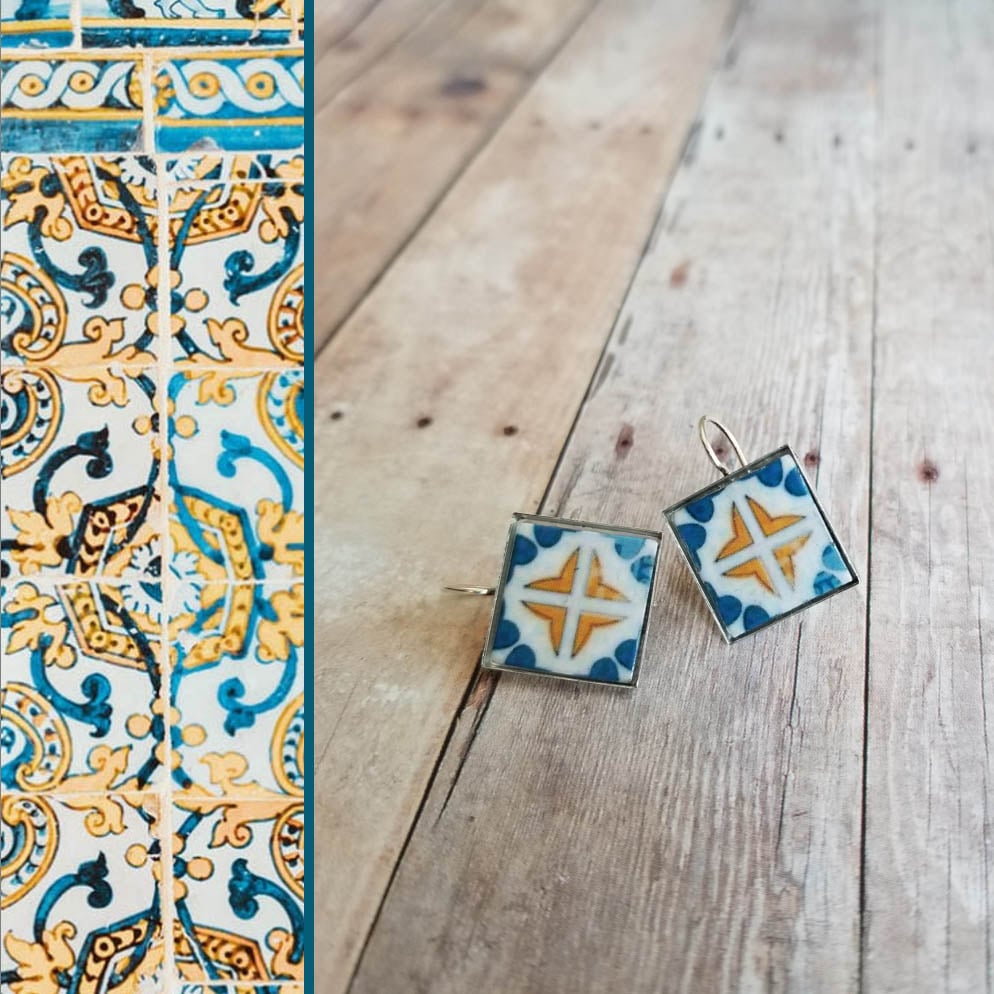 Mediterranean Tile Earrings - Sea Blue + Gold