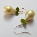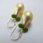 So very pretty. Sweet pears are topped by tiny green leaves. Hanging from sterling silver ear wires.