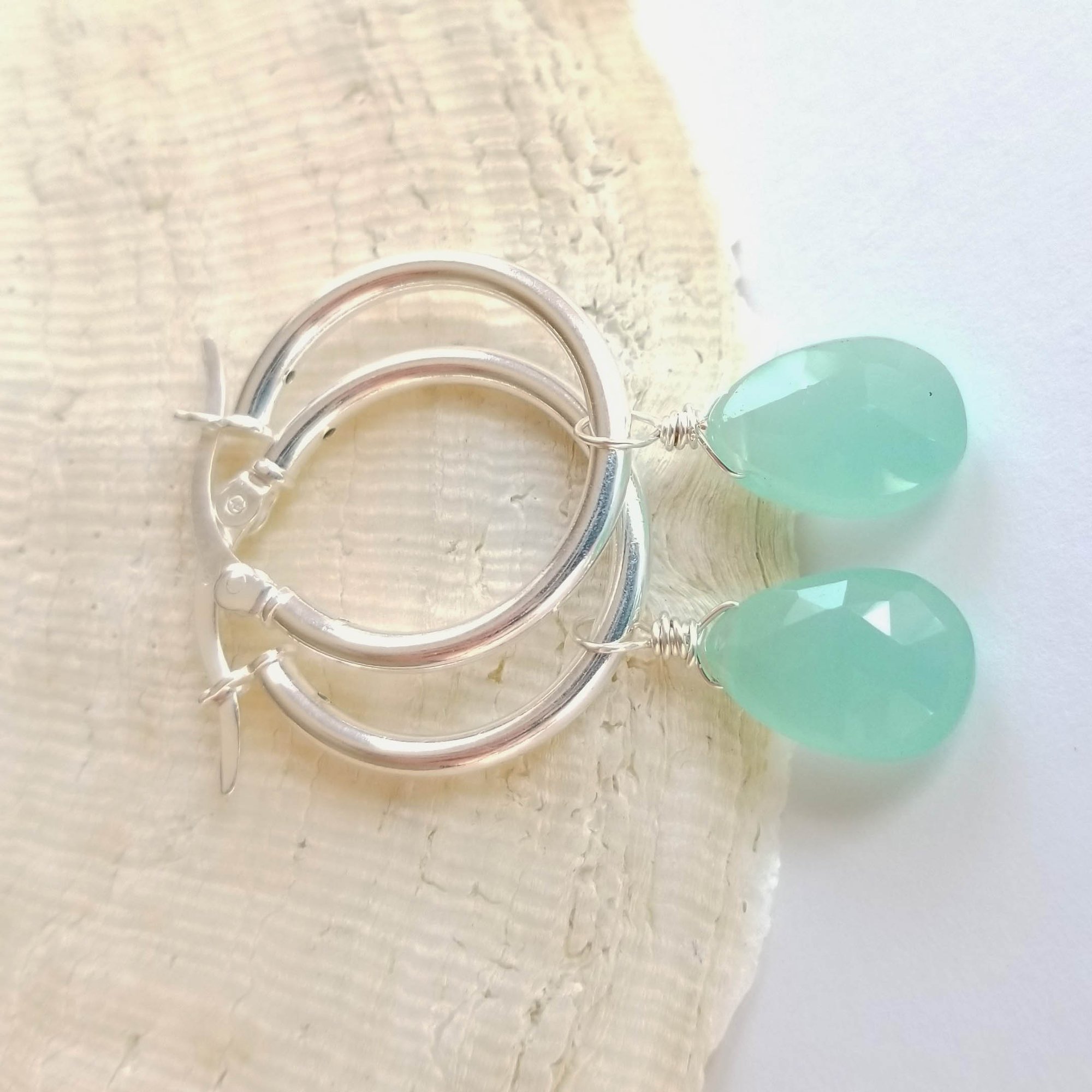 Silver Hoop + Aqua Chalcedony Earrings