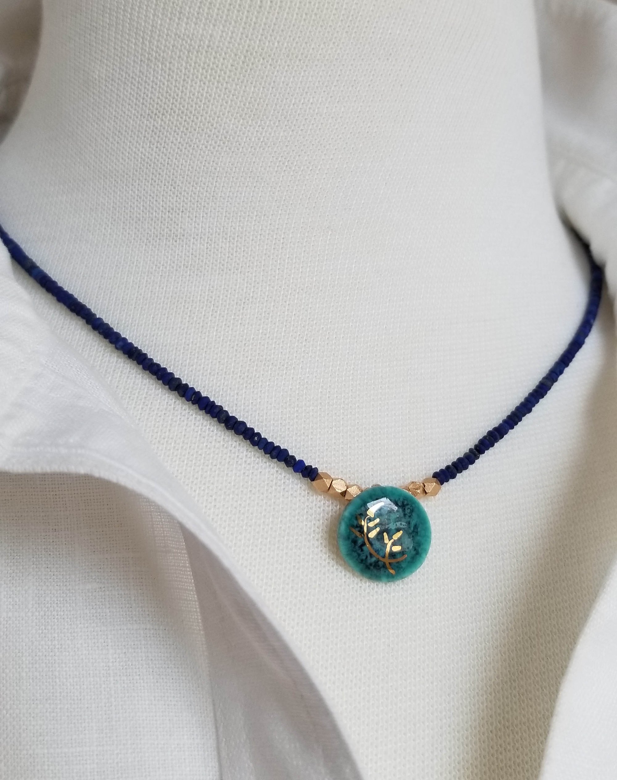 Teal Porcelain + Lapis Necklace