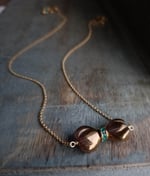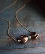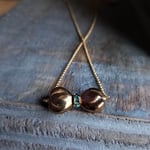 A tiny bronze-colored glass bow, front and center, makes a lovely pendant for this sweet girly necklace. The perfect accessory for your next social occasion. Accented in the center with aqua rhinestones. Hanging from a matte gold rolo chain. Pendant measures nearly 1". Necklace measures 16 - 18" (using the built in necklace extender). Finished with a matte gold lobster clasp. All components are lead and nickel-free. Very. Very. Sweet.