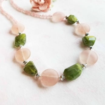 Matte Peach Coin + Moss Green Agate Nugget Necklace - One of a Kind