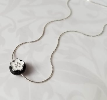Black Tin Rosey Pink Flower Pottery Shard Earrings